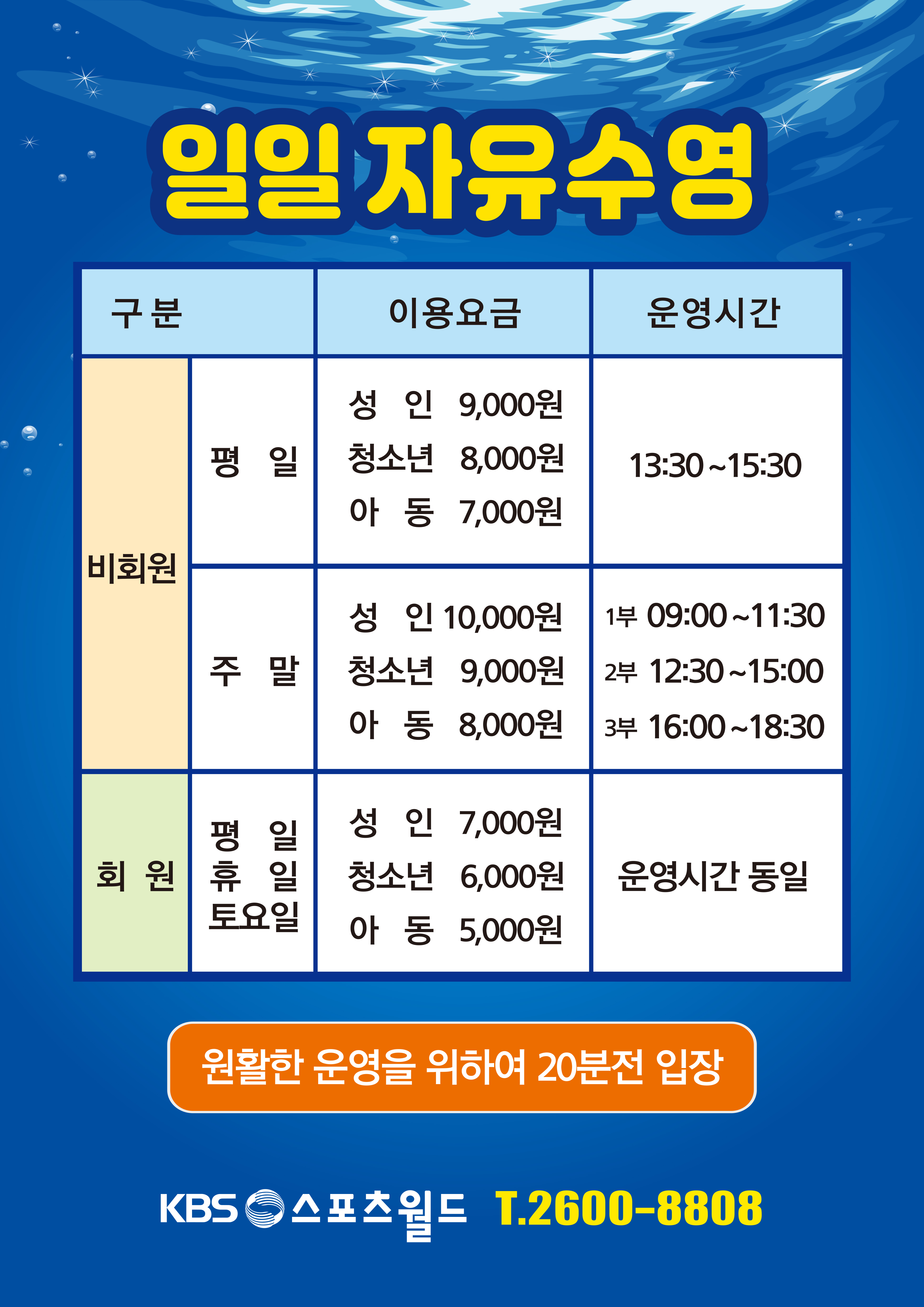 성수기 자유수영 시간 안내